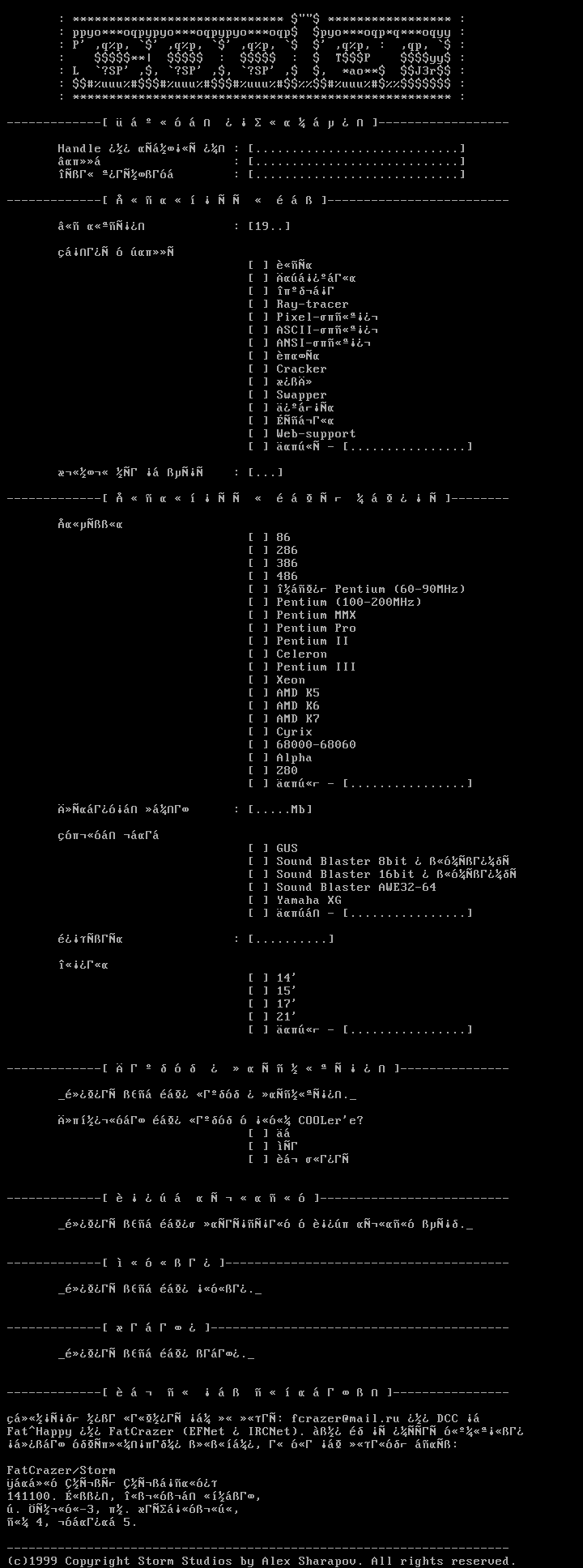 c1999 Copyright Storm Studios by Alex Sharapov. All rights reserved.