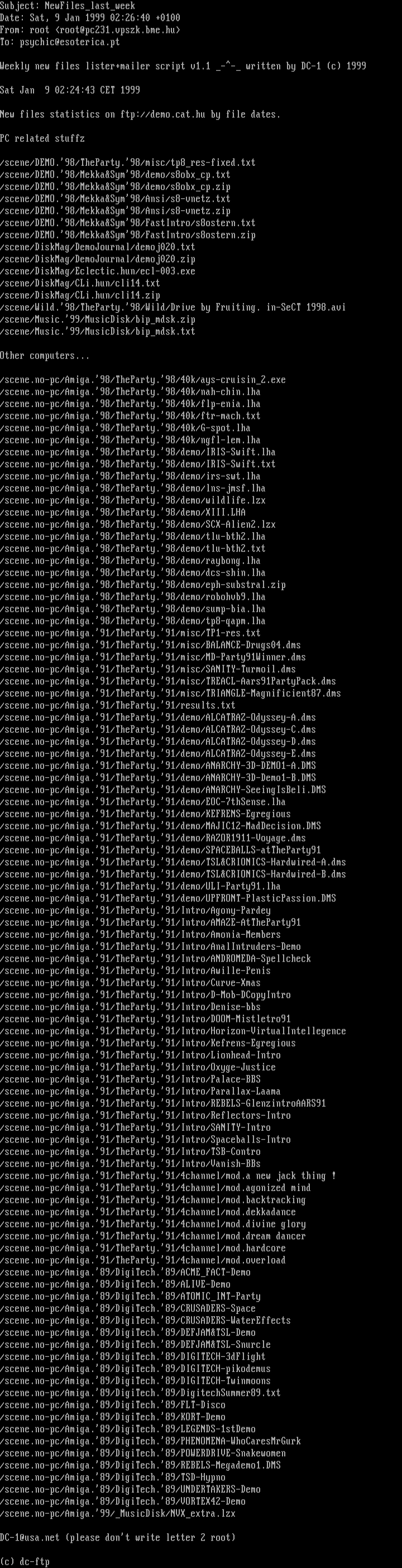 Weekly new files lister+mailer script v1.1 -- written by DC-1 c 1999