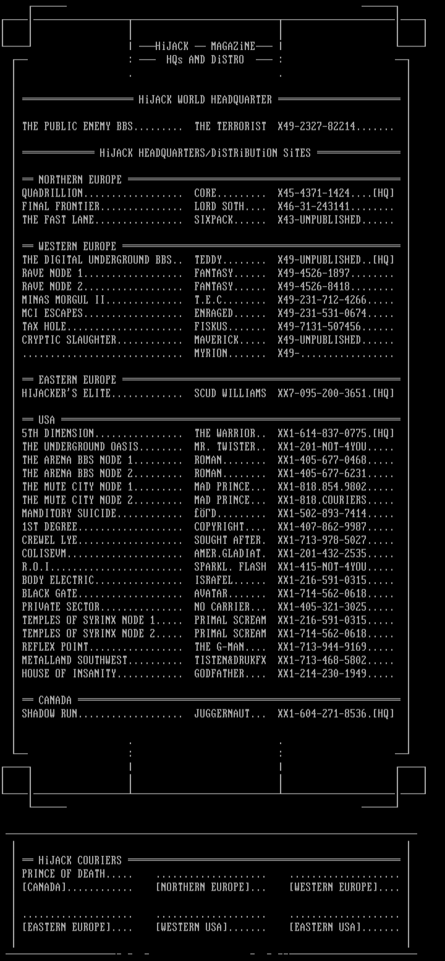 HiJACK HEADQUARTERS/DiSTRiBUTiON SiTES