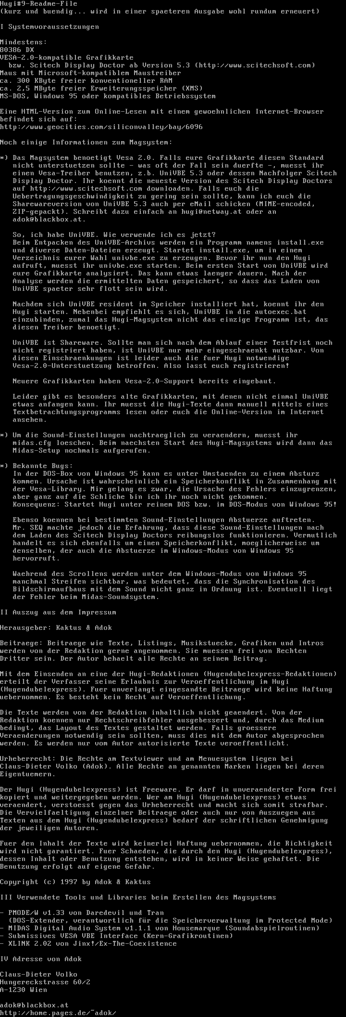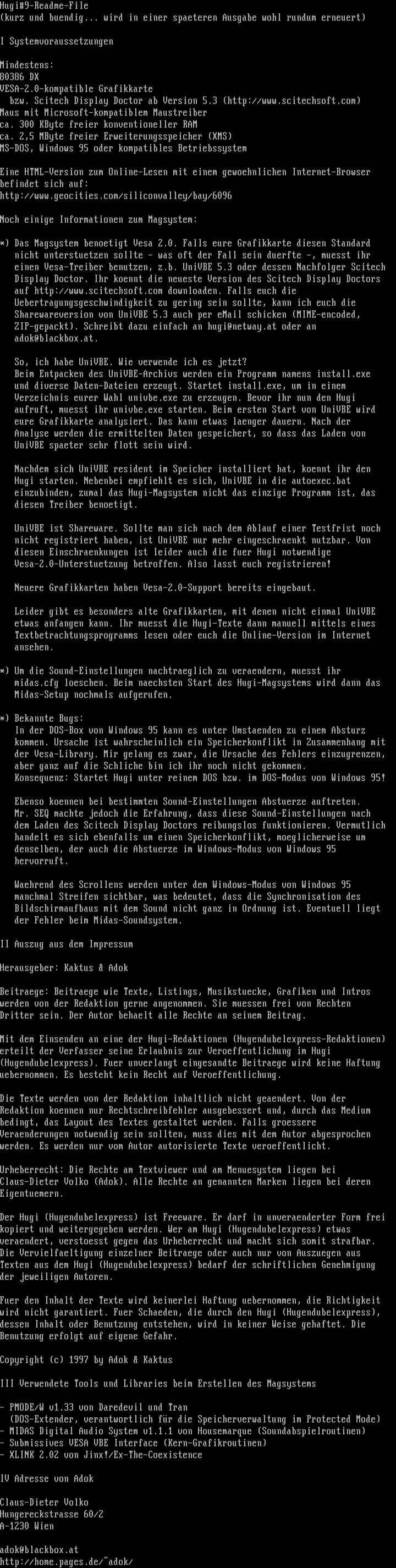 Konsequenz: Startet Hugi unter reinem DOS bzw. im DOS-Modus von Windows 95!