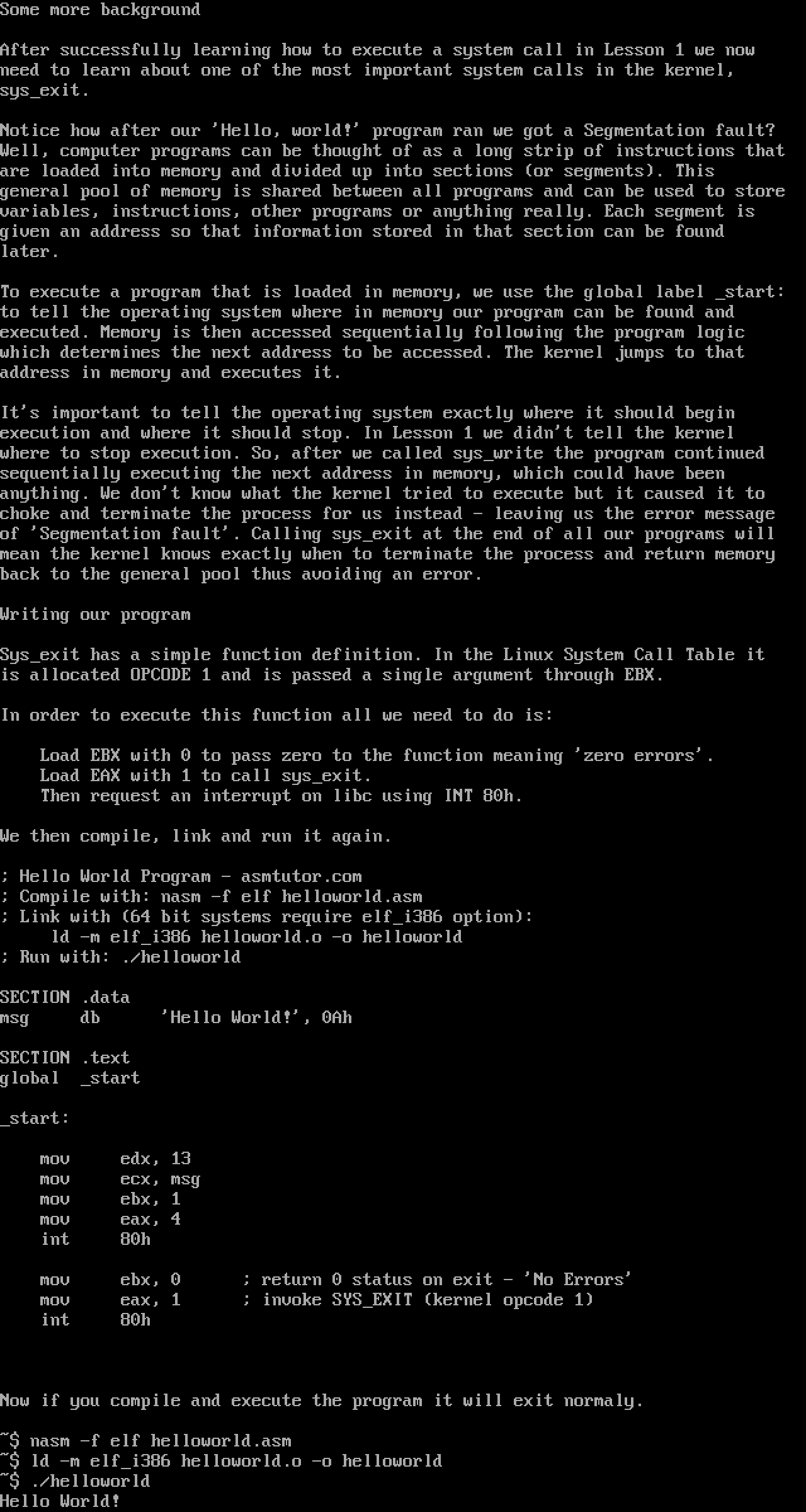 mov eax, 1 invoke SYSEXIT kernel opcode 1