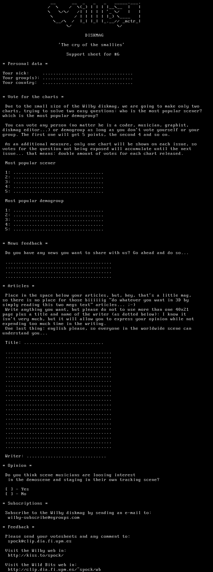 Subscribe to the Wilby diskmag by sending an e-mail to: