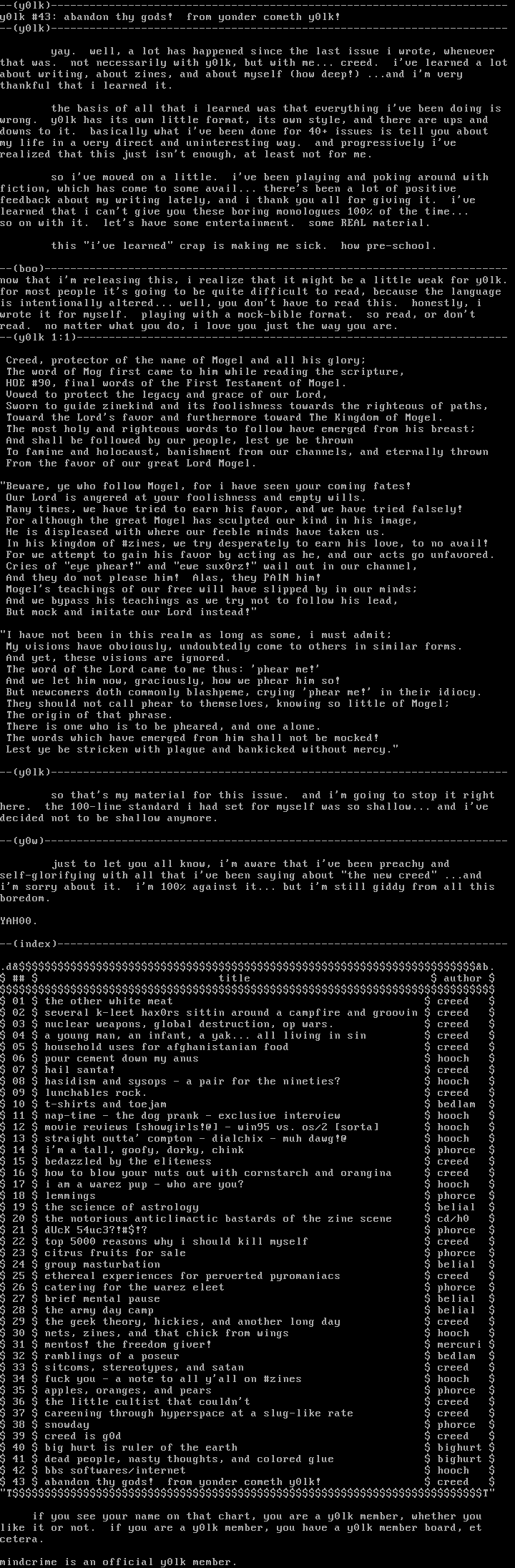 43 abandon thy gods! from yonder cometh y0lk! creed