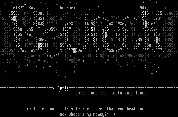 ------------------------sn1p-17------------------------------------------------- ---- gotta love the leeto snip line.