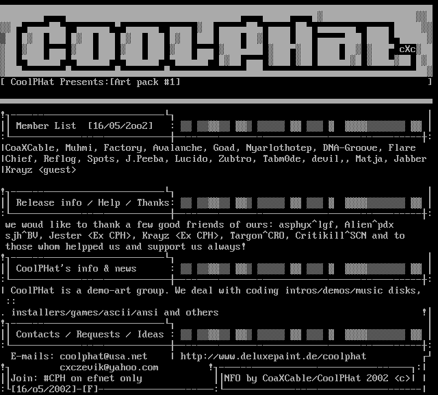 Join: CPH on efnet only NFO by CoaXCable/CoolPHat 2002 c