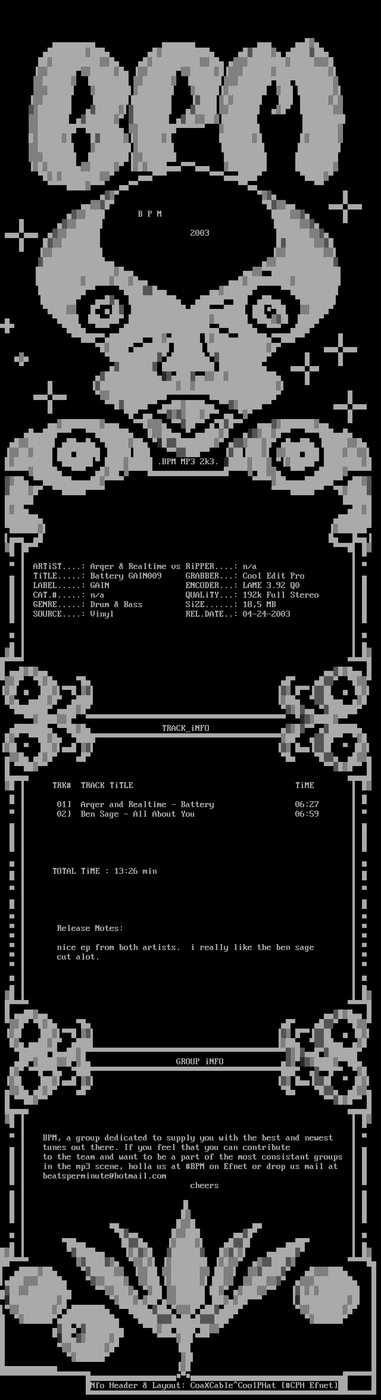in the mp3 scene, holla us at BPM on Efnet or drop us mail at