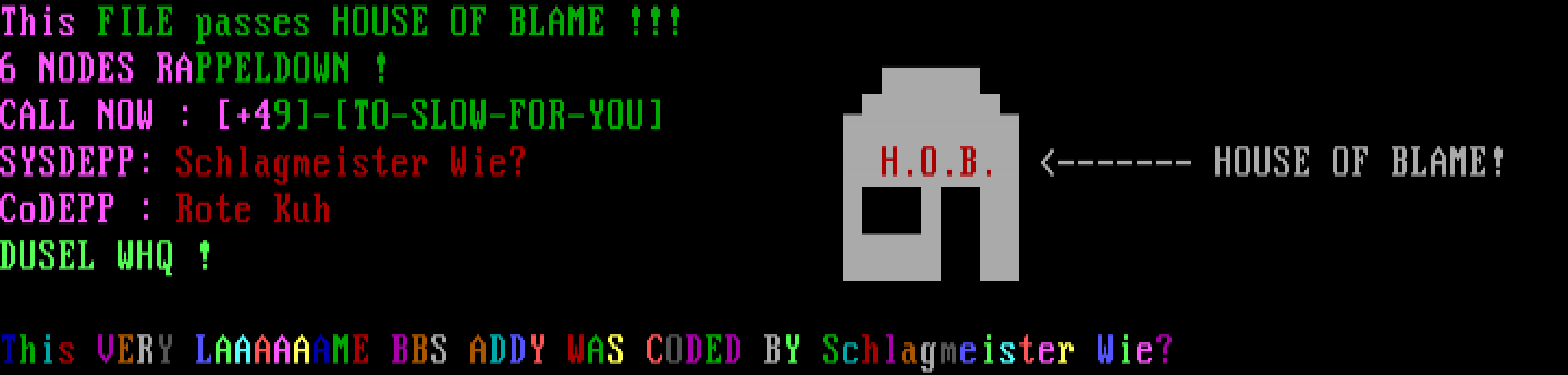 This VERY LAAAAAAME BBS ADDY WAS CODED BY Schlagmeister Wie?