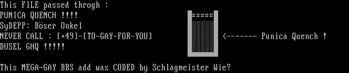 This MEGA-GAY BBS add was CODED by Schlagmeister Wie?
