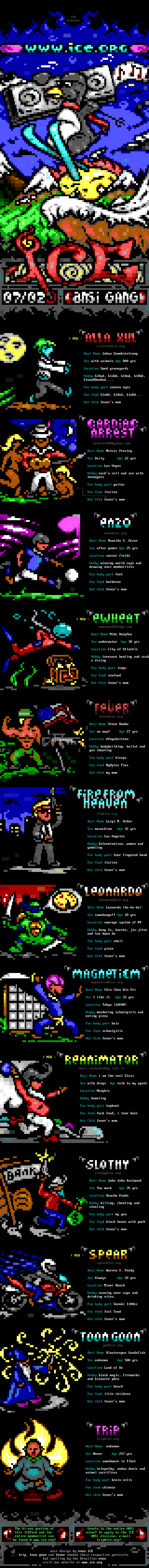 The hi-rez portion of Greets to the entire ANSi this iCEPack and the scene! To apply to the iCE entire memberlist can ANSi division, e-mail be found @ www.ice.org! trip@ice.org! ansi design by enzo.iCE trip, toon goon and fever shaded their respective portraits bad spelling by the Brazilian enzo visit our website at www.ice.org