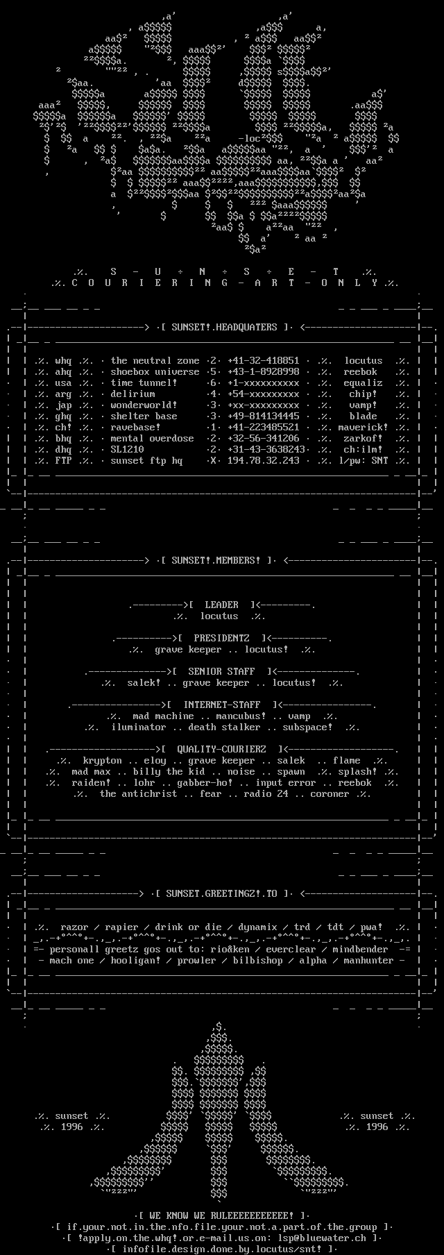 .. FTP .. sunset ftp hq X 194.78.32.243 .. l/pw: SNT ..