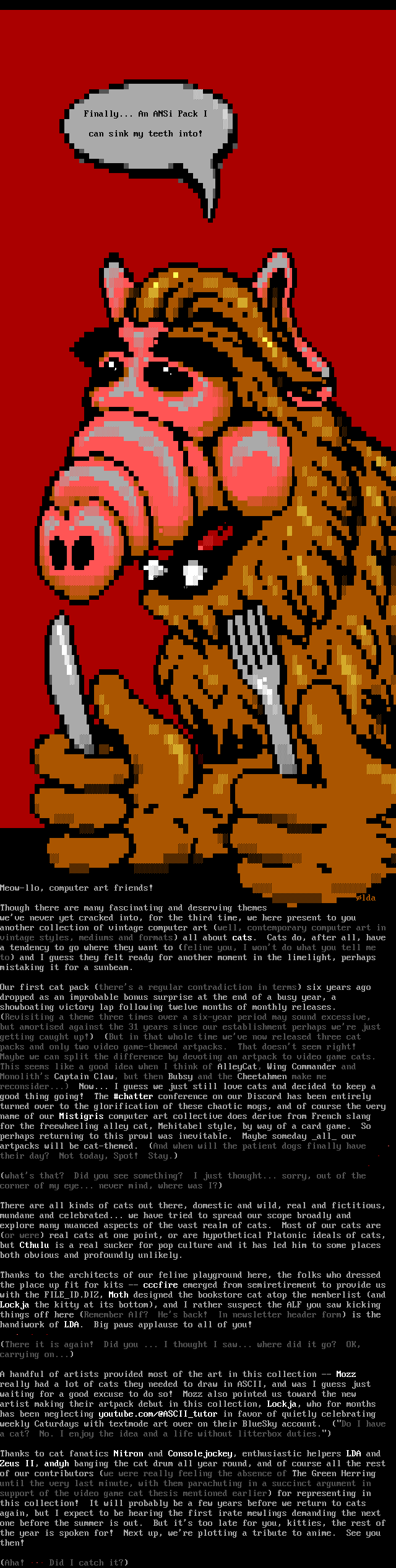 Meow-llo, computer art friends! lda Though there are many fascinating anddeserving themes weve never yet cracked into, for the third time, we herepresent to you