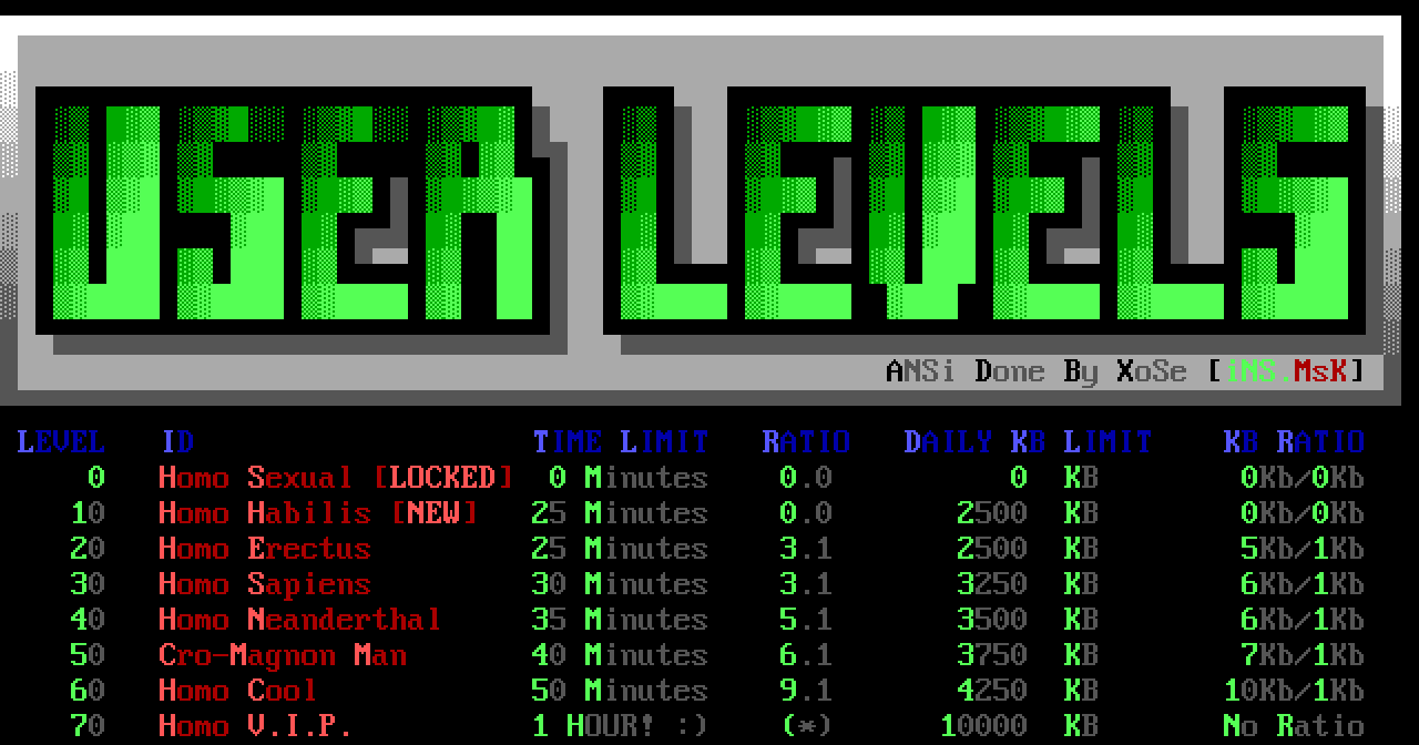 LEVEL ID TIME LIMIT RATIO DAILY KB LIMIT KB RATIO