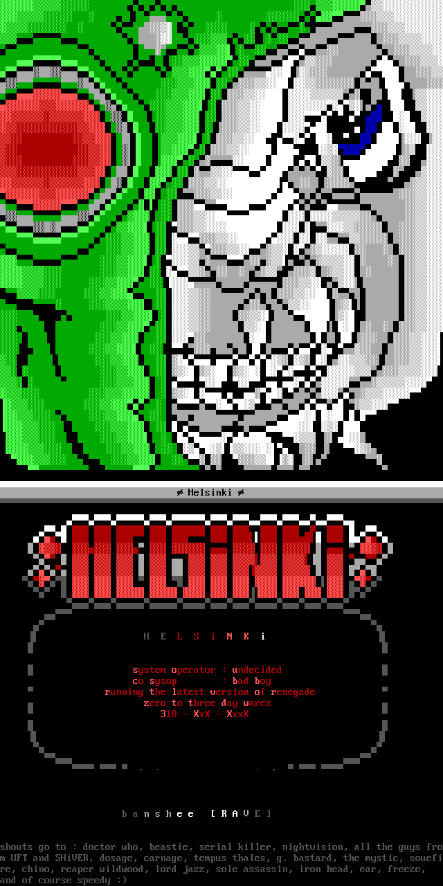 shouts go to : doctor who, beastie, serial killer, nightvision, all the guys from UFT and SHiVER, dosage, carnage, tempus thales, g. bastard, the mystic, souefire, chino, reaper wildwood, lord jazz, sole assassin, iron head, ear, freeze,