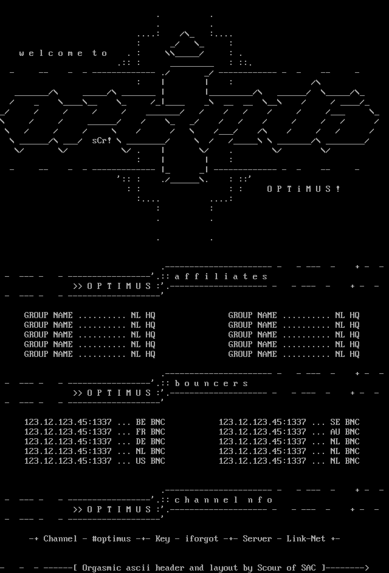 -+ Channel - optimus -+- Key - iforgot -+- Server - Link-Net +-