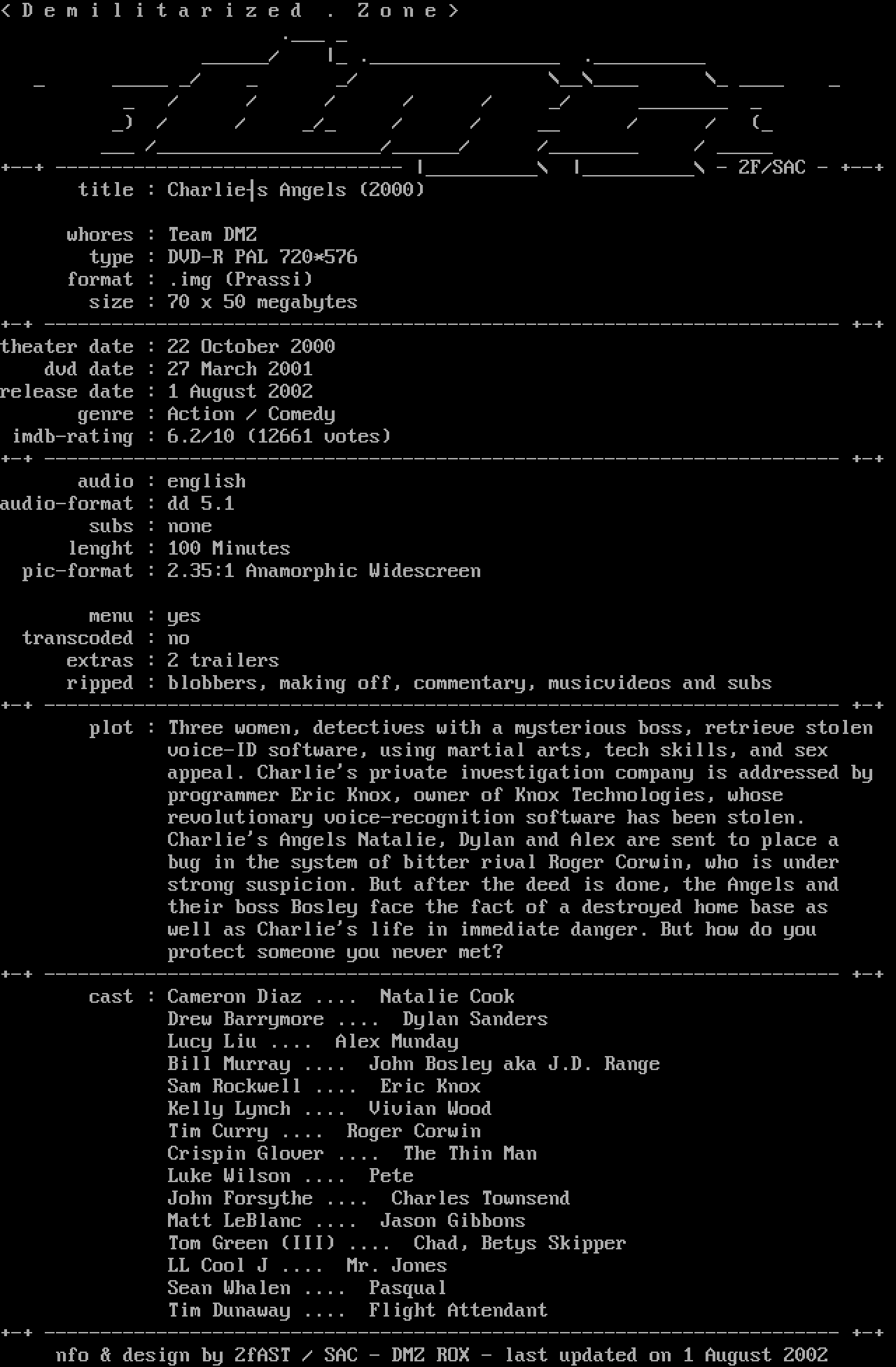 nfo design by 2fAST / SAC - DMZ ROX - last updated on 1 August 2002