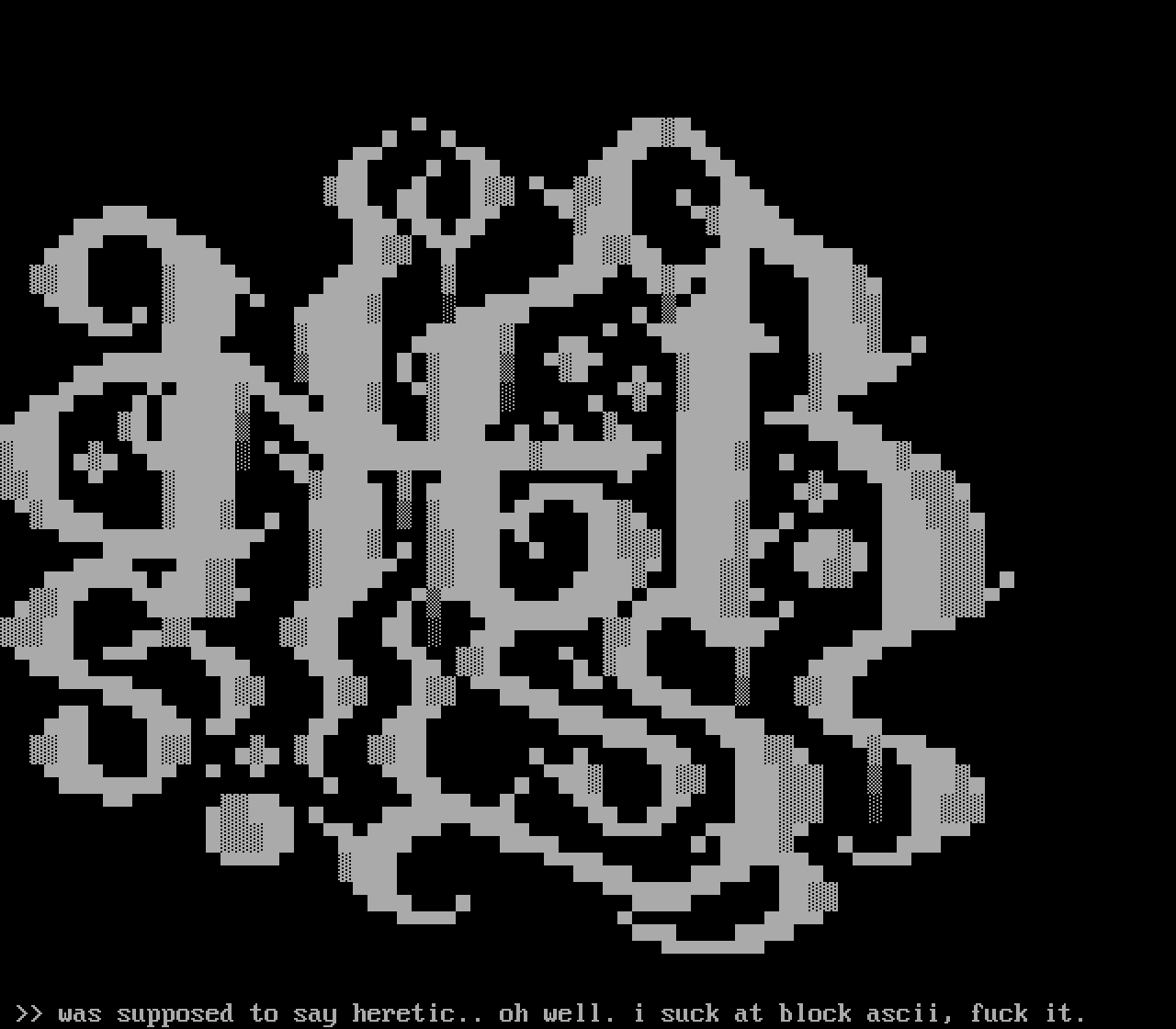 was supposed to say heretic.. oh well. i suck at block ascii, fuck it.