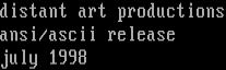 Distant was an art group founded by Deceased Squirrel and Zarcastius in 1998. Distant merged with the ascii art group Savage in 1998.