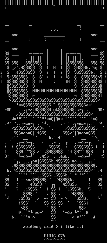 contributors: black jack, h7, jashiin, jeffie, m0lo, mimic ascii, ricky martin