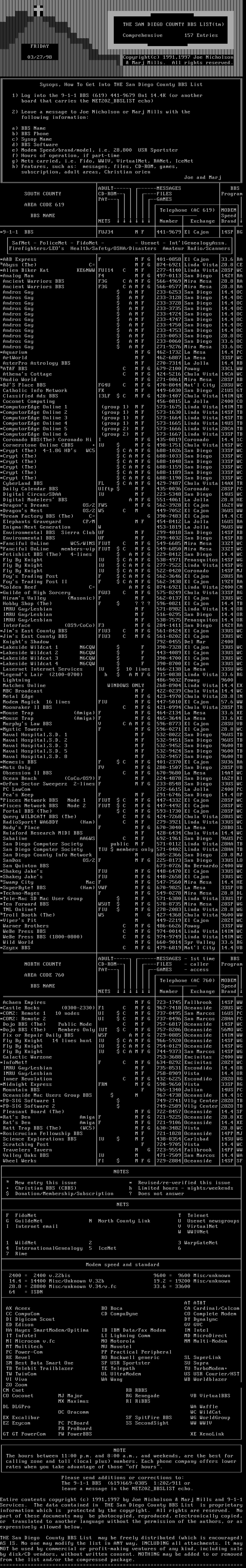 Services. The data contained in THE San Diego County BBS List is proprietary