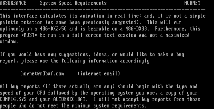 CONFIG.SYS and your AUTOEXEC.BAT. I will not accept bug reports from those