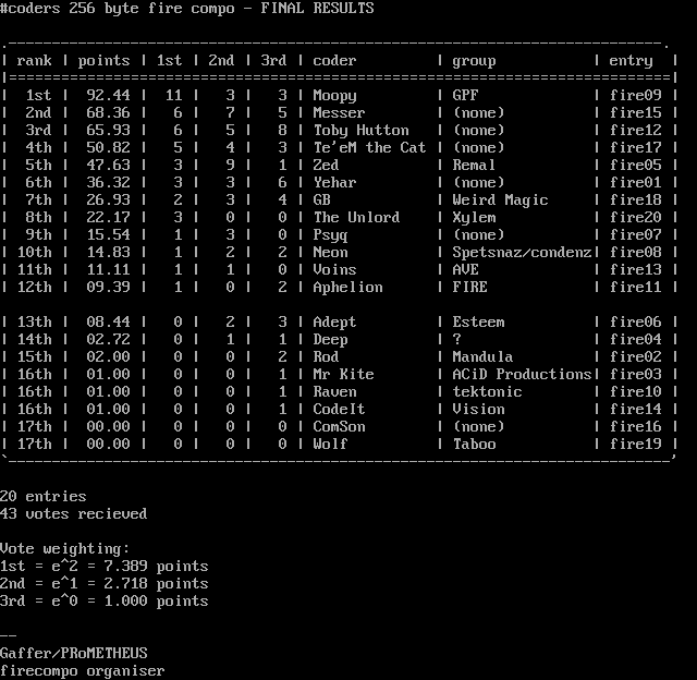 coders 256 bytes fire compo'98.res