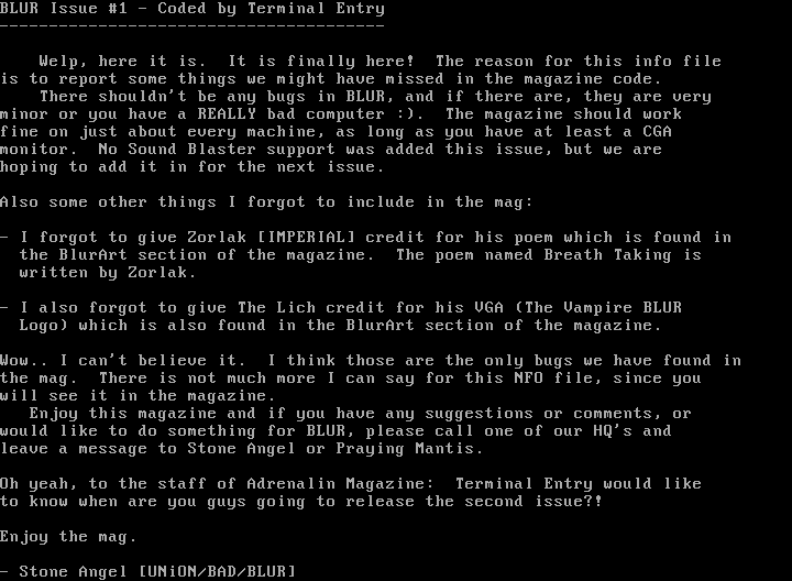 BLUR Issue 1 - Coded by Terminal Entry