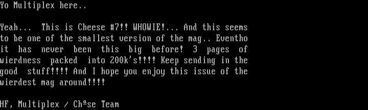 Yeah... This is Cheese 7!! WHOWIE!... And this seems