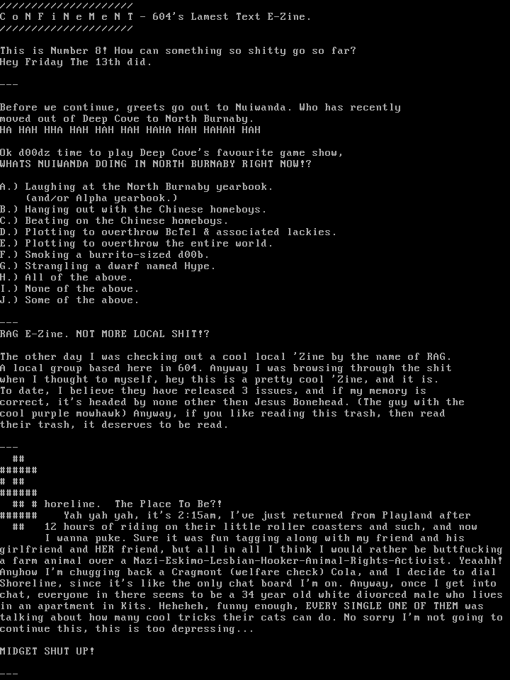 C o N F i N e M e N T - 604s Lamest Text E-Zine.
