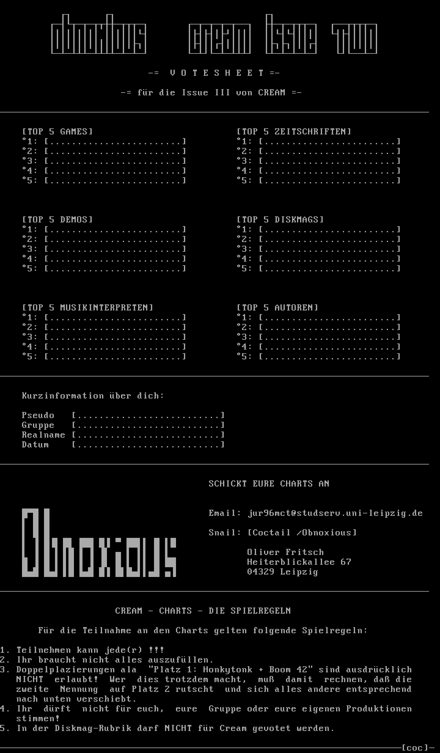 5. In der Diskmag-Rubrik darf NICHT fr Cream gevotet werden.