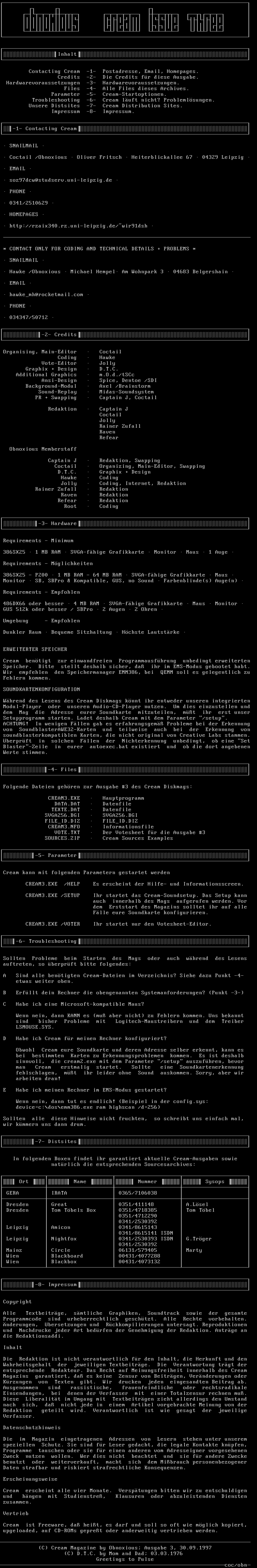Folgende Dateien gehren zur Ausgabe 3 des Cream Diskmags: