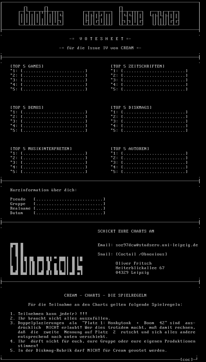 5. In der Diskmag-Rubrik darf NICHT fr Cream gevotet werden.
