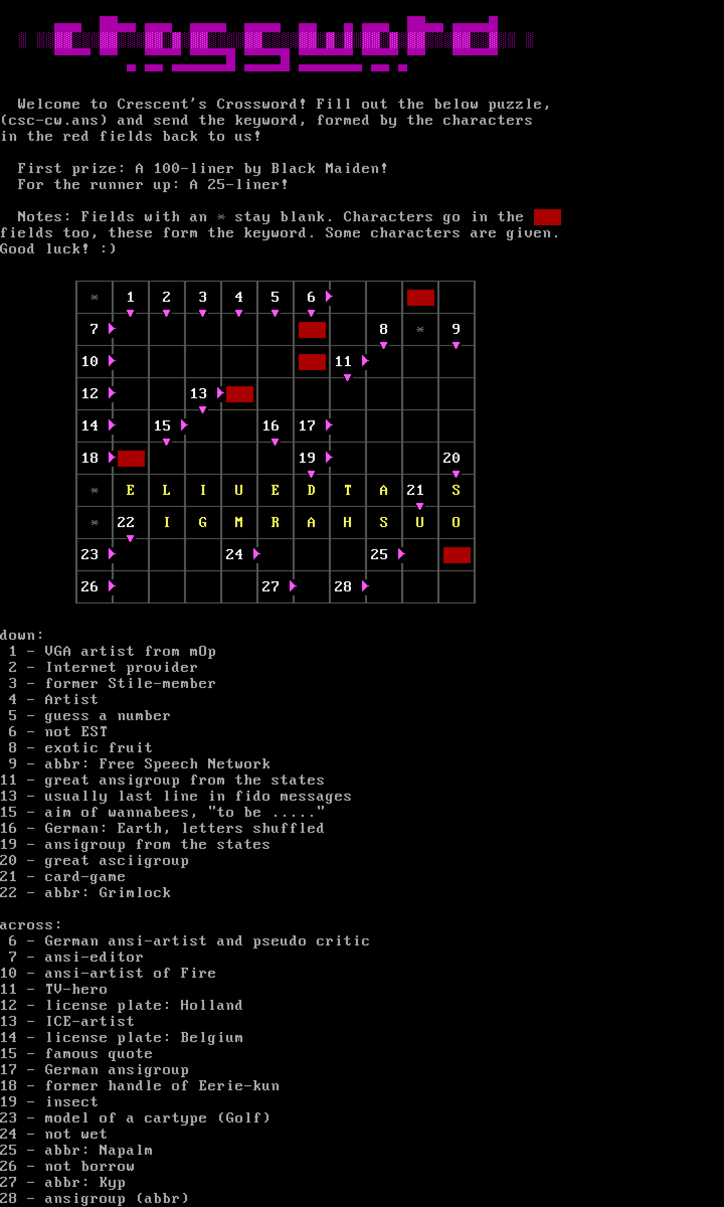 Welcome to Crescents Crossword! Fill out the below puzzle,