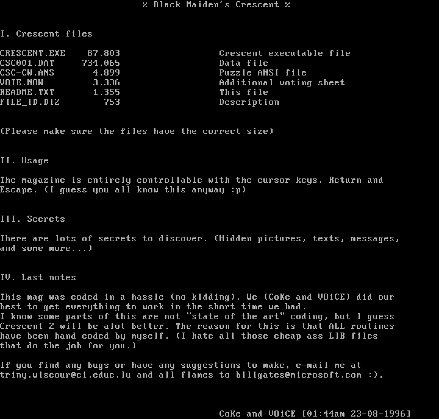 This mag was coded in a hassle no kidding. We CoKe and VOiCE did our