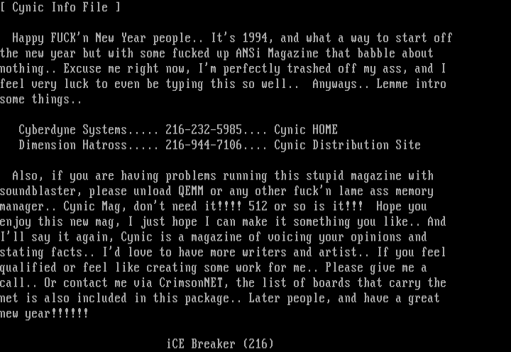 the new year but with some fucked up ANSi Magazine that babble about