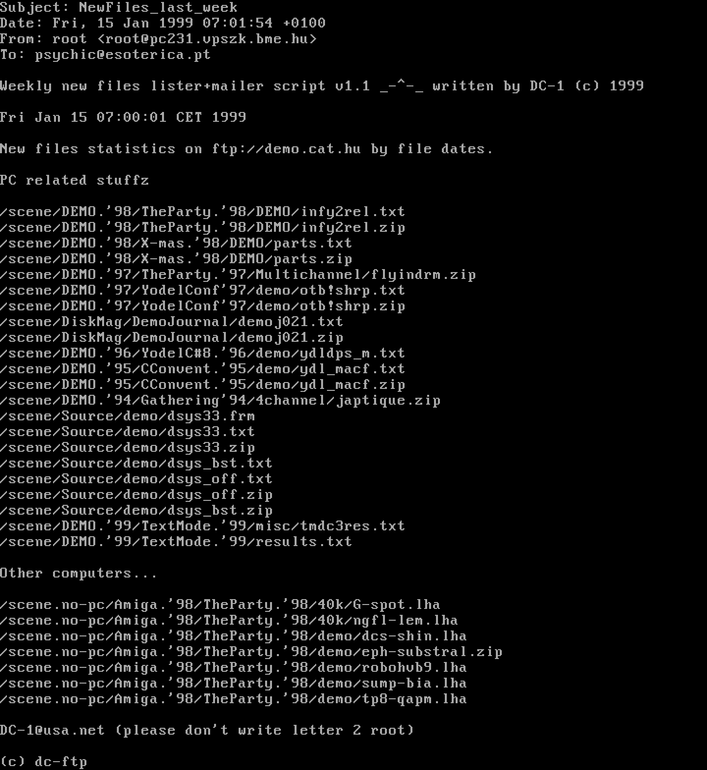 Weekly new files lister+mailer script v1.1 -- written by DC-1 c 1999