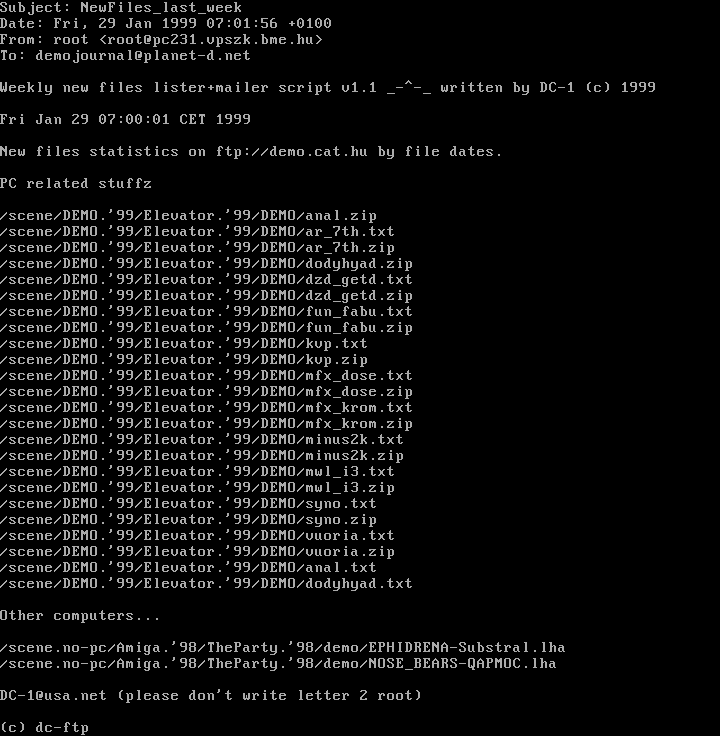 Weekly new files lister+mailer script v1.1 -- written by DC-1 c 1999