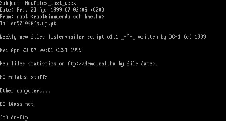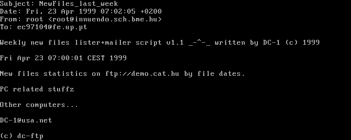 Weekly new files lister+mailer script v1.1 -- written by DC-1 c 1999