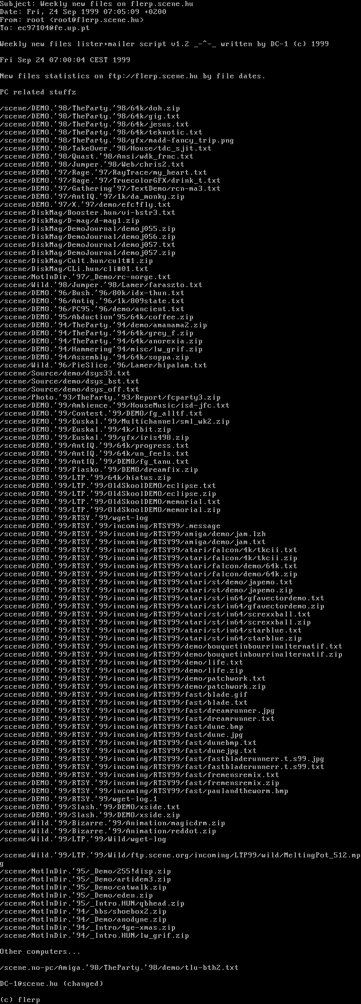 Weekly new files lister+mailer script v1.2 -- written by DC-1 c 1999