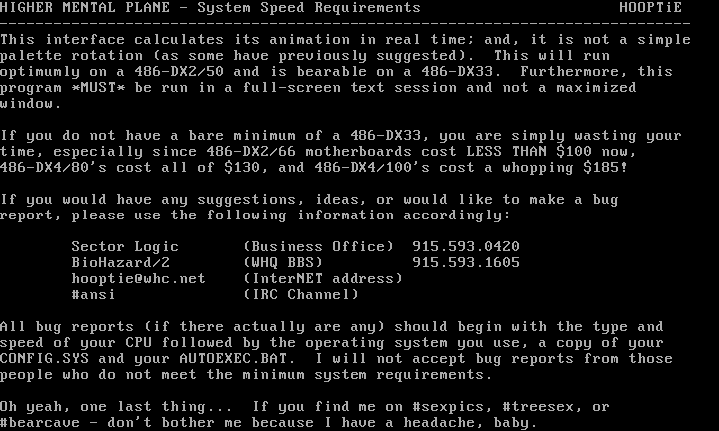 HIGHER MENTAL PLANE - System Speed Requirements HOOPTiE