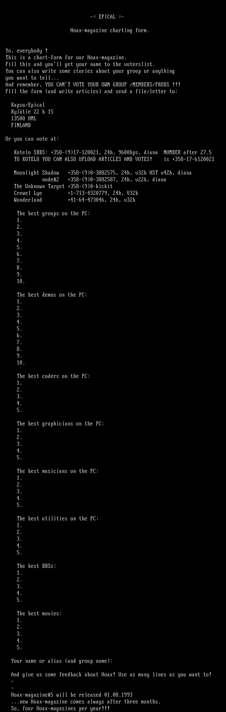 Hoax-magazine5 will be released 01.08.1993