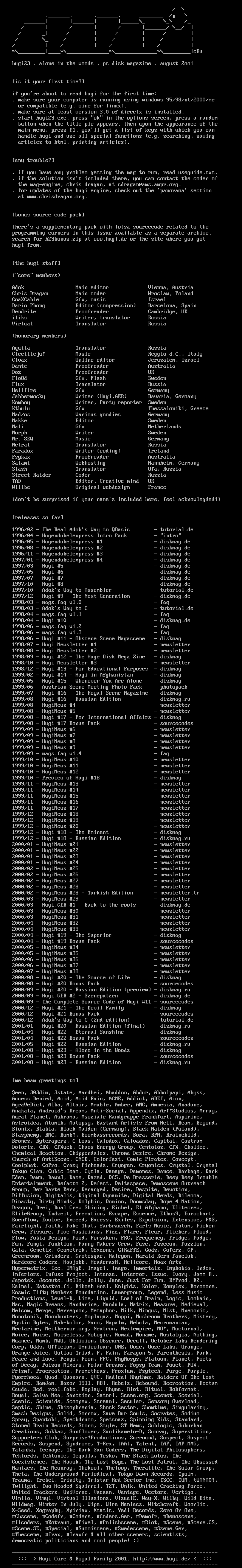 hugi23 . alone in the woods . pc disk magazine . august 2oo1