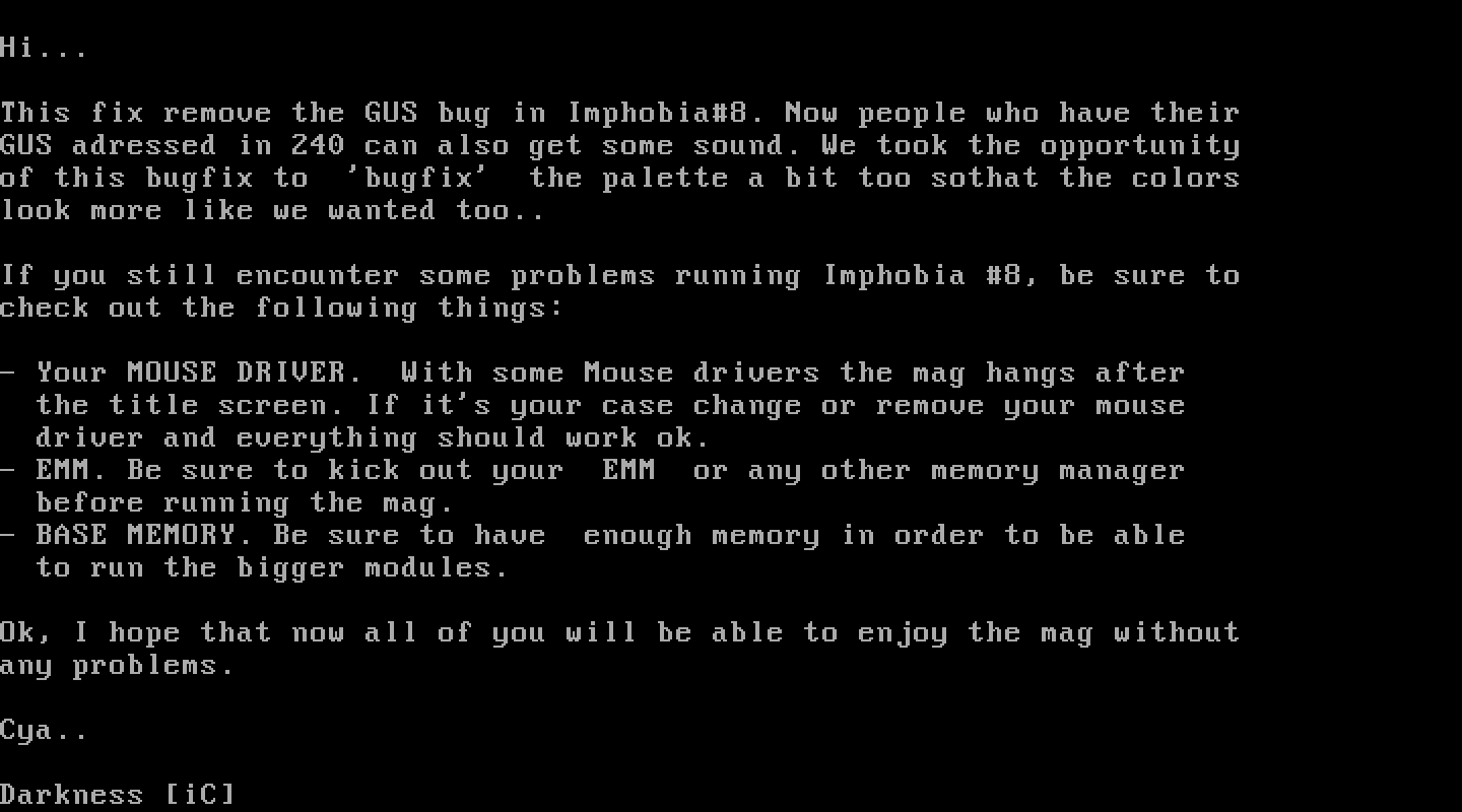 This fix remove the GUS bug in Imphobia8. Now people who have their