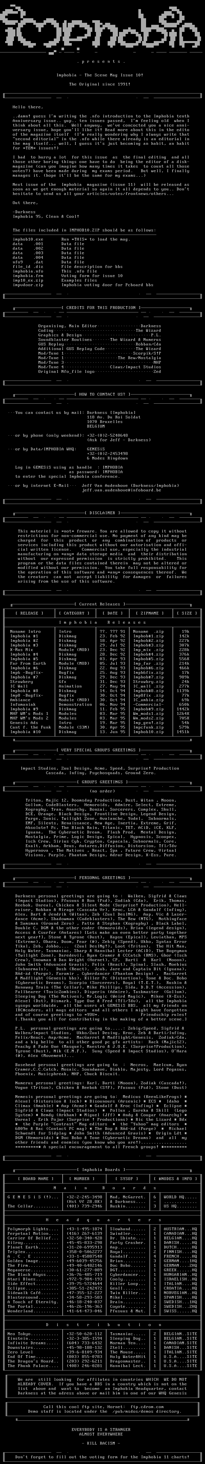 Imphobia 9 Diskmag 11. Feb 95 Imphob9.zip 1442k