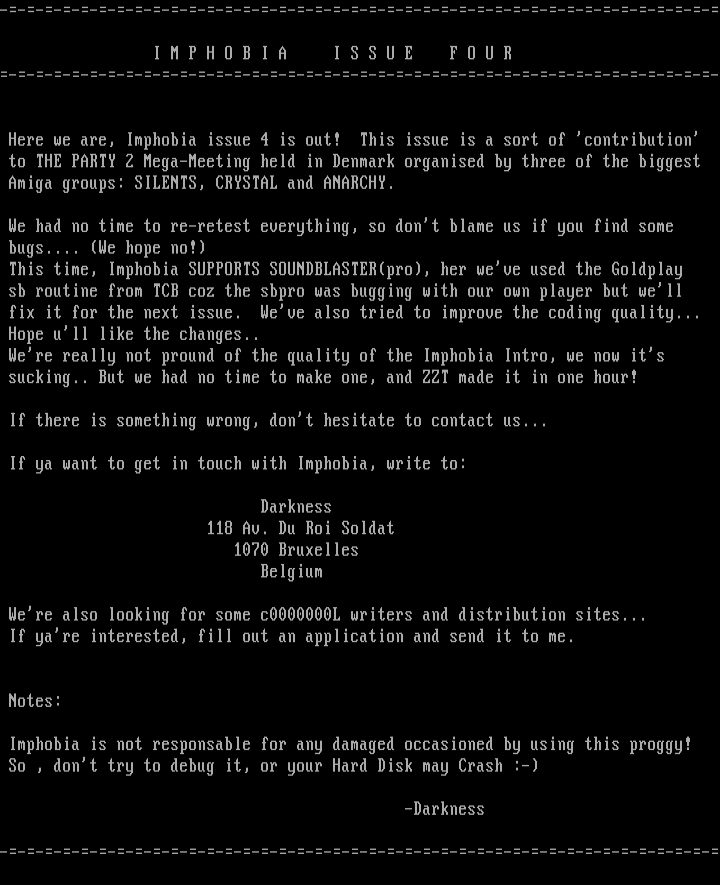 Imphobia is not responsable for any damaged occasioned by using this proggy!