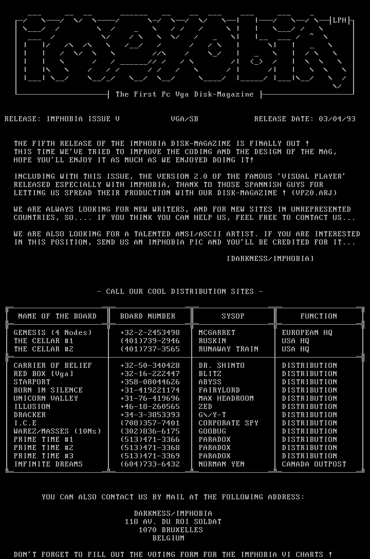 RELEASE: IMPHOBIA ISSUE V VGA/SB RELEASE DATE: 03/04/93