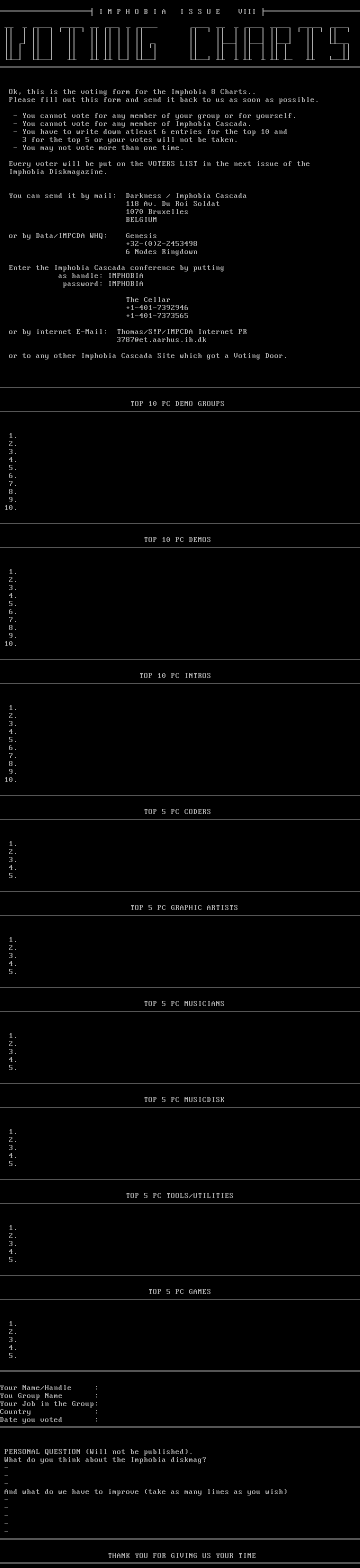 Ok, this is the voting form for the Imphobia 8 Charts..