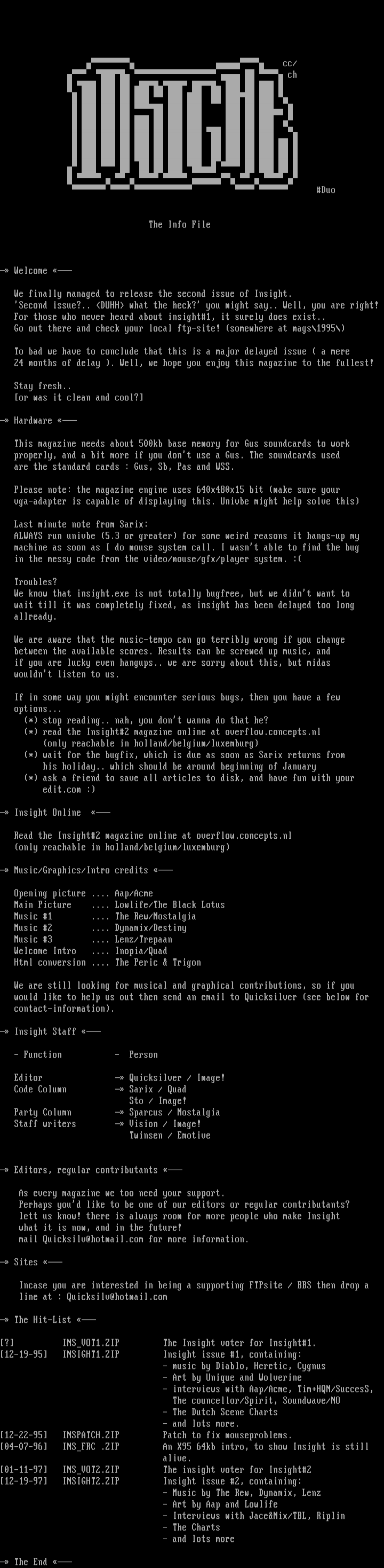 12-19-97 INSIGHT2.ZIP Insight issue 2, containing: