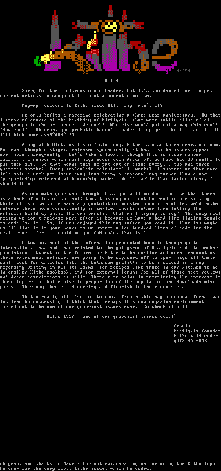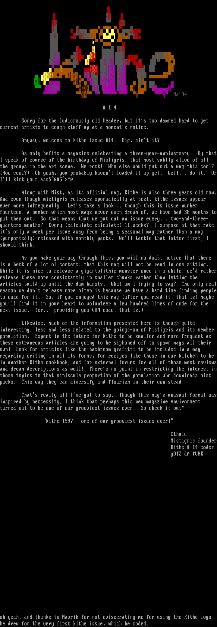 SAUCE00Information on Kithe issue 14 Cthulu mISTfUNK 19971031