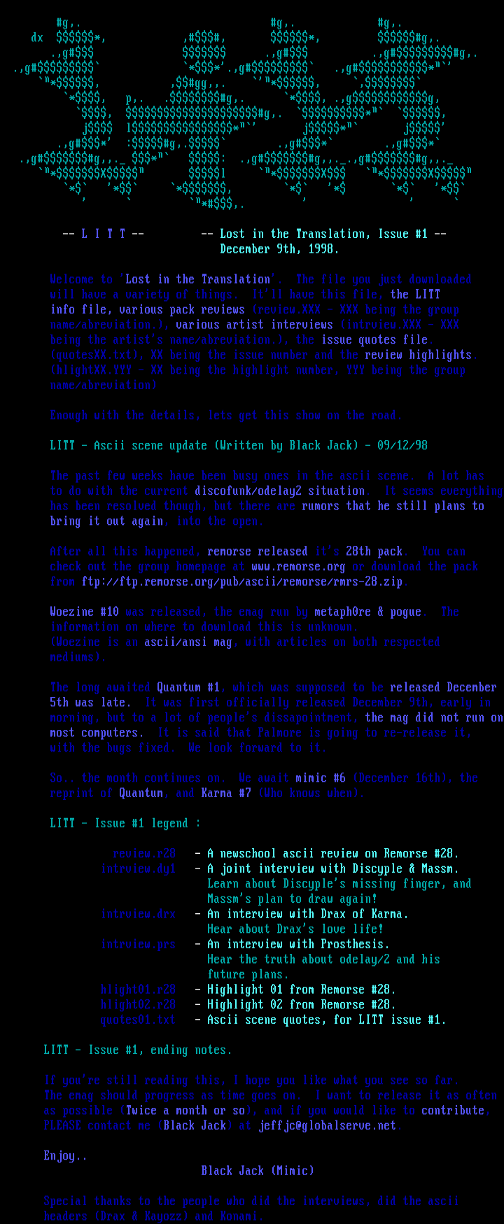 36mLITT - Ascii scene update Written by Black Jack - 09/12/98