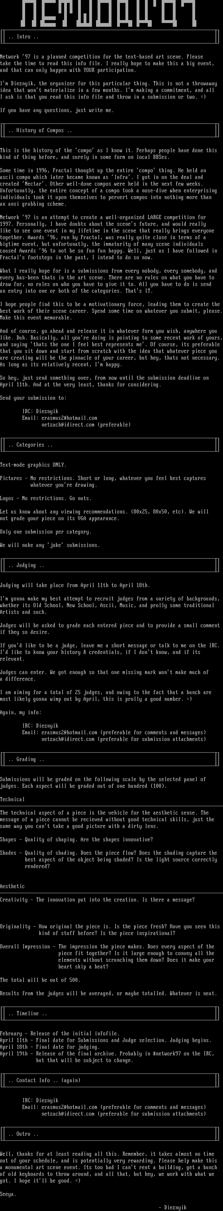 April 19th - Release of the final archive. Probably in network97 on the IRC,